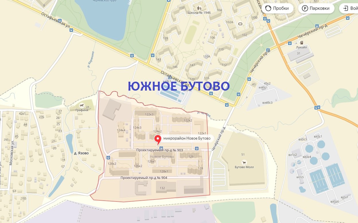 ЖК «Новое Бутово» находится на границе района «Южное Бутово», в непосредственной близости находятся все объекты инфраструктуры района «Южное Бутово» (поликлиника № 121 на расстоянии 1,2 км от ЖК «Новое Бутово», почта России 2,2 км, многофункциональный центр 2,4 км, пенсионный фонд 3,5 км, школа № 1368 0,5 км, избирательный участок в этой школе 0,5 км). В настоящий момент ЖК «Новое Бутово» относится к муниципальному образованию поселения Воскресенское, округу ТИНАО и те же самые объекты инфраструктуры, которые жители вынуждены посещать на постоянной основе разбросаны по всему ТИНАО и находятся на гораздо большем удалении от наших домов: поликлиника в Коммунарке (более 5 км), почта России пос. Воскресенское (более 5 км), многофункциональный центр пос. Воскресенское (более 5 км), пенсионный фонд г. Троицк (более 15 км), школа № 2122 (более 2.5 км), избирательный участок (более 5 км). В среднем расстояние до шести вышеперечисленных учреждений района Южное Бутово от ЖК «Новое Бутово» более чем в 3 раза меньше, чем до тех, к которым жители микрорайона прикреплены сейчас. Ситуация осложняется еще и тем, что до большинства учреждений ТИНАО для жителей ЖК «Новое Бутово» отсутствует прямое транспортное сообщение и добраться до них с многочисленными пересадками можно лишь за 3-4 часа в одну сторону.